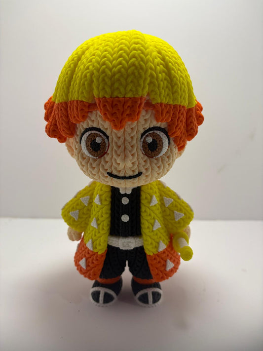 Figura Zenitsu Impresa en 3D Estilo Crochet